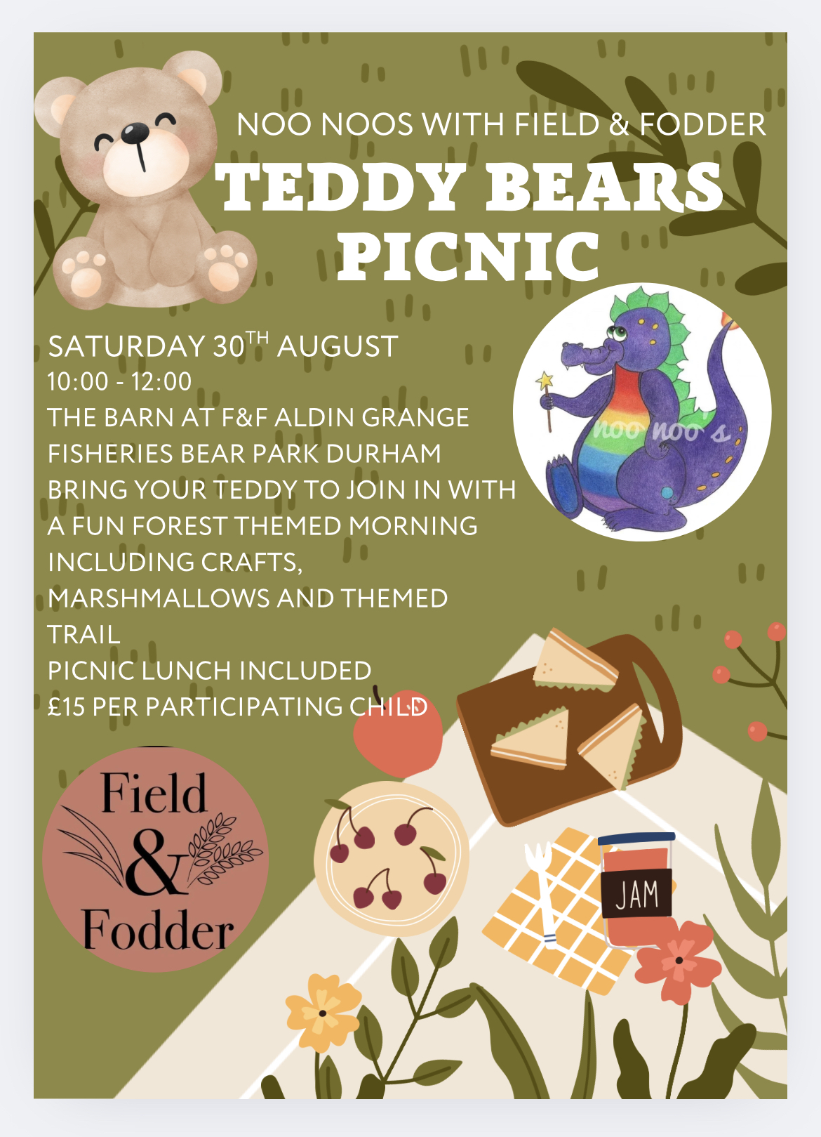 Teddy Bears Picnic Barn Forest Adventure Join Noo Noo’s for an enchanting Barn Forest Experience where your Teddy Bear takes center stage as the guest of honour. Embark on a delightful trail around the site, with your teddy guiding you through a series of fun clues. Engage in crafting a whimsical forest-themed activity alongside your furry friend, learn the art of lighting a fire, toast marshmallows to perfection, or swing together in cosy hammocks while snuggling up with a captivating book. Embrace the beauty of nature and simply enjoy the great outdoors. Together, we will celebrate your teddy as the guest of honour at our grand sharing table within Field Fodder Coffee Shop. Delicious food is included in the cost. Experience the magic of the outdoors as you and your teddy bear embark on an unforgettable adventure filled with laughter and creativity.